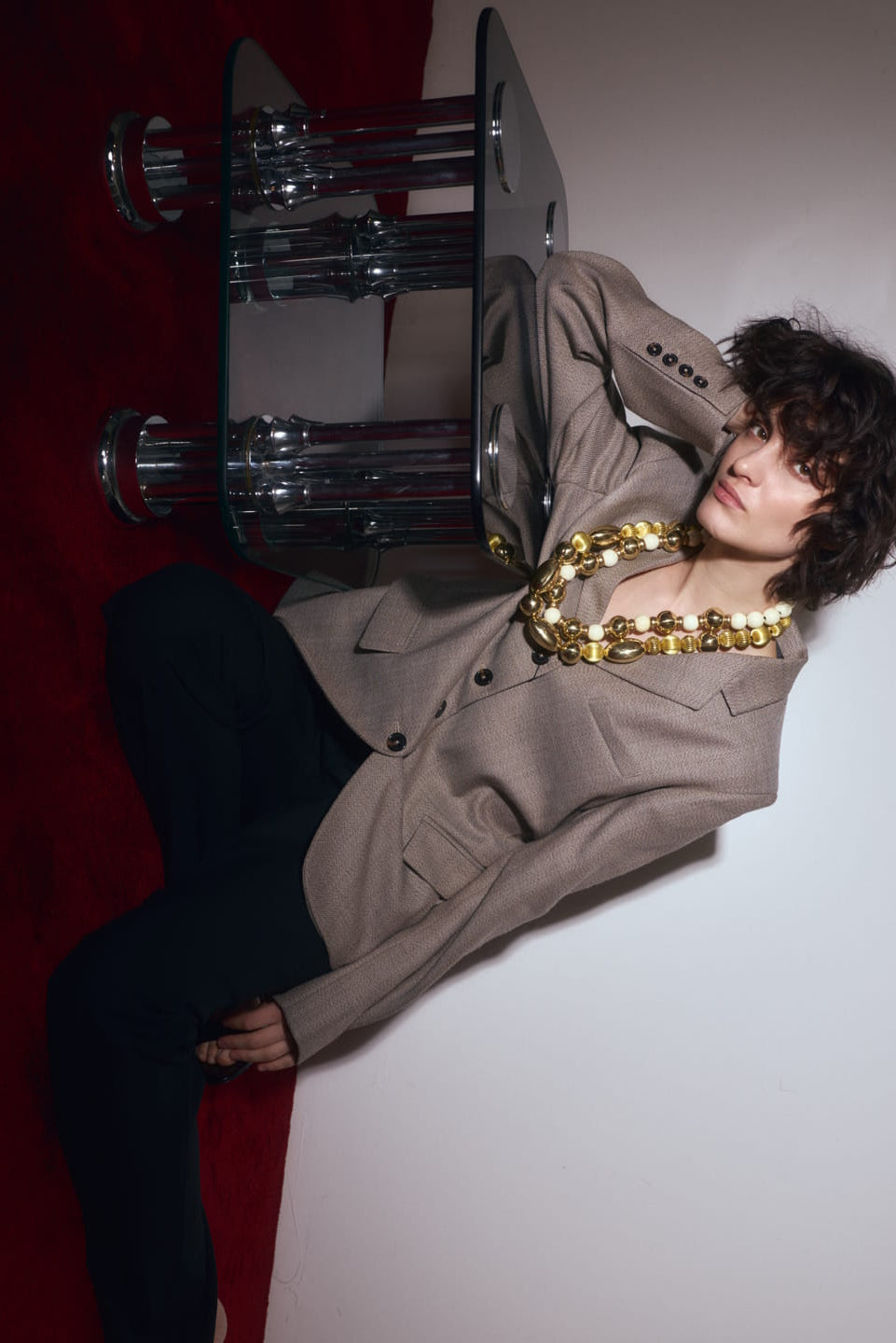 Collaret llarg d'efecte bicolor fet amb boles de ceràmica i llautó intercalades.
