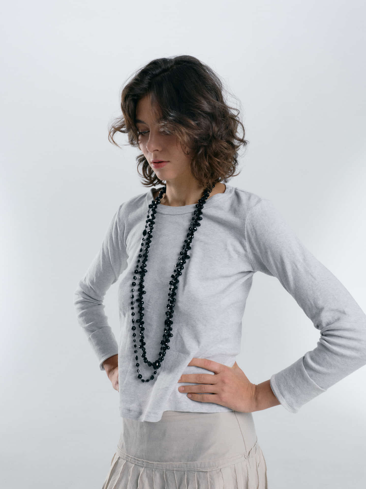 Collaret llarg, compost de boles i llavors de vidre tornassolat.