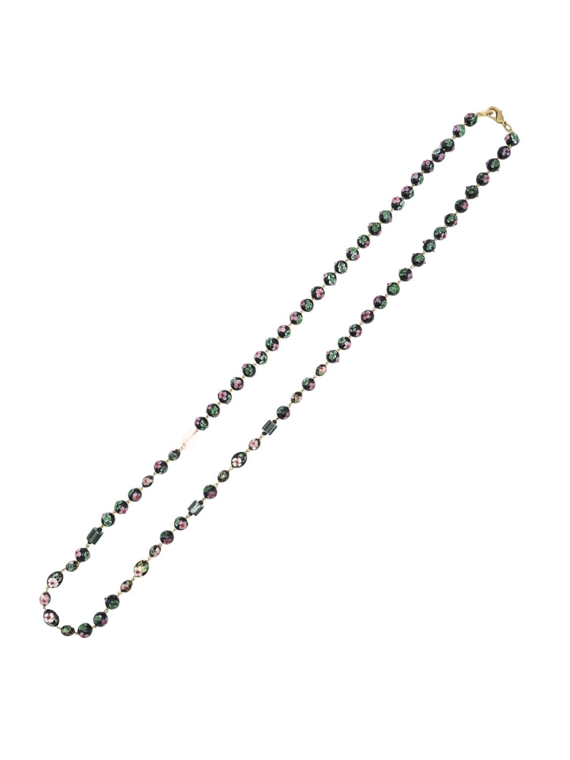 Collaret llarg de color negre amb dibuixos florals de rosa i verd.