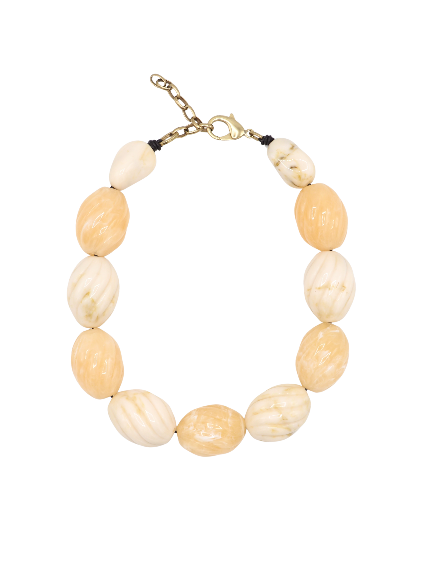 Collar largo, hecho con dos tiras, a diferentes alturas, de bolas XL de resina bicolor.